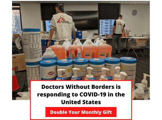 These are difficult times to say the least. But MSF has been able to scale up in more than 70 countries around the world. Our monthly donors, our Field Partners, ensure we’re prepared to go where others can’t–or won’t–when emergency strikes. That's why, as we face the new challenges presented by the pandemic, our Board of Advisors is challenging us to bring in 1,000 new monthly supporters this month. If we meet this goal, they will match these gifts with a one-time grant of $120,000!
