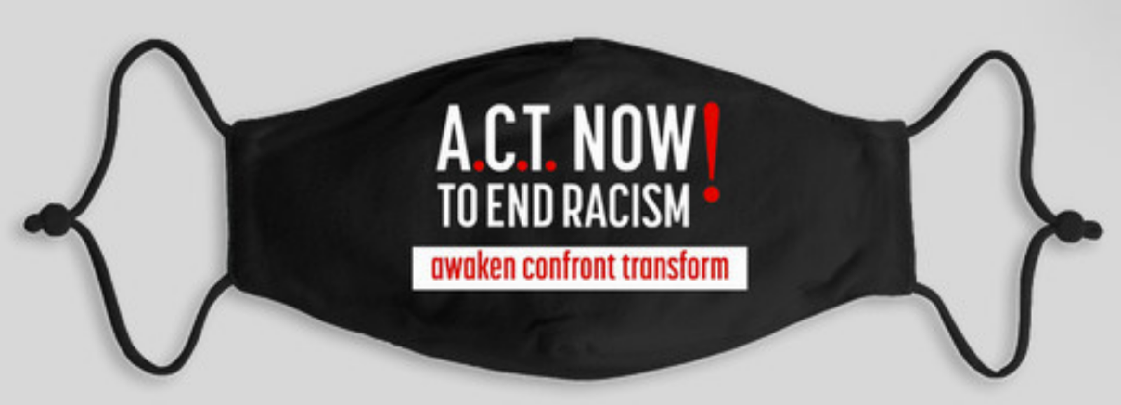 The face mask’s design highlights NCC’s A.C.T. (Awaken, Confront, Transform) Now to End Racism! campaign. Show your commitment to do the hard work to dismantle racism b