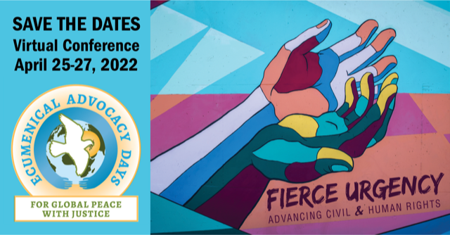 Ecumenical Advocacy Days is a movement of the ecumenical Christian community, and its recognized partners and allies, grounded in biblical witness and our shared traditions of justice, peace and the integrity of creation. Our goal, through worship, theological reflection and opportunities for learning and witness, is to strengthen our Christian voice and to mobilize for advocacy on a wide variety of U.S. domestic and international policy issues.